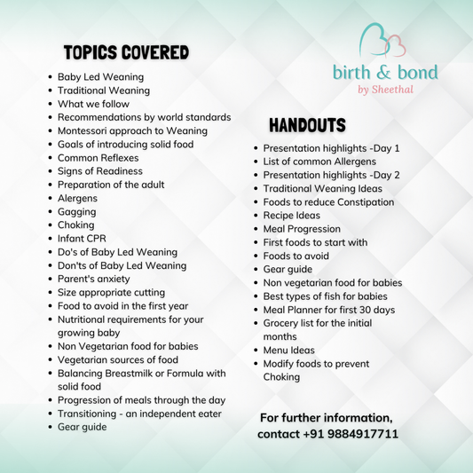 I attended Baby Led Weaning webinar conducted by Sheetal .It was very useful and she explained allaspects of it . It's really overwhelming for any new Mom when they start solids but the knowledge gained in your webinar would really help them to plan and execute it very well. You were also thoughtful to concentrate on Mother's nutrition and your slide really helped to understand. Thanks for sharing your personal experience of each and every stage you tried, we could correlate with what you are saying. On the whole I would say it was one of the best experiences I had and also gained a good knowledge out of it . Keep doing great work and Inspire many Moms. Kudos to you 🙂
